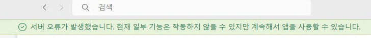 "서버 오류가 발생했습니다. 현재 일부 기능은 작동하지 않을 수 있지만 계속해서 앱을 사용할 수 있습니다."