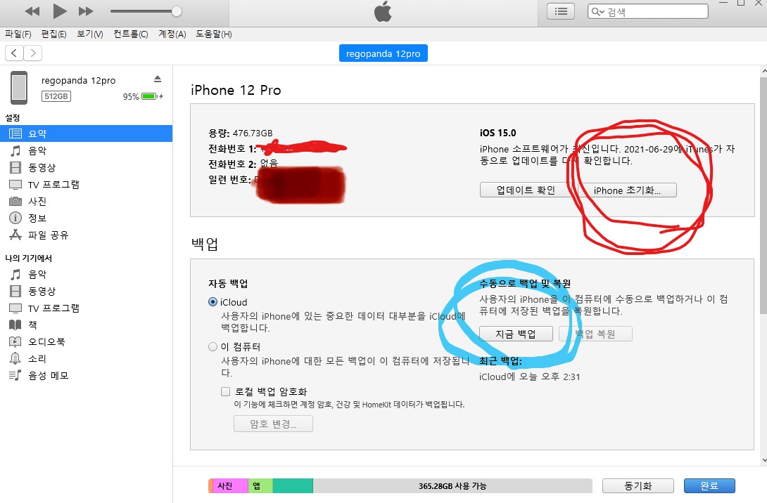 아이튠즈를 이용해서 합니다. 아래 순서대로 하시면 됩니다.