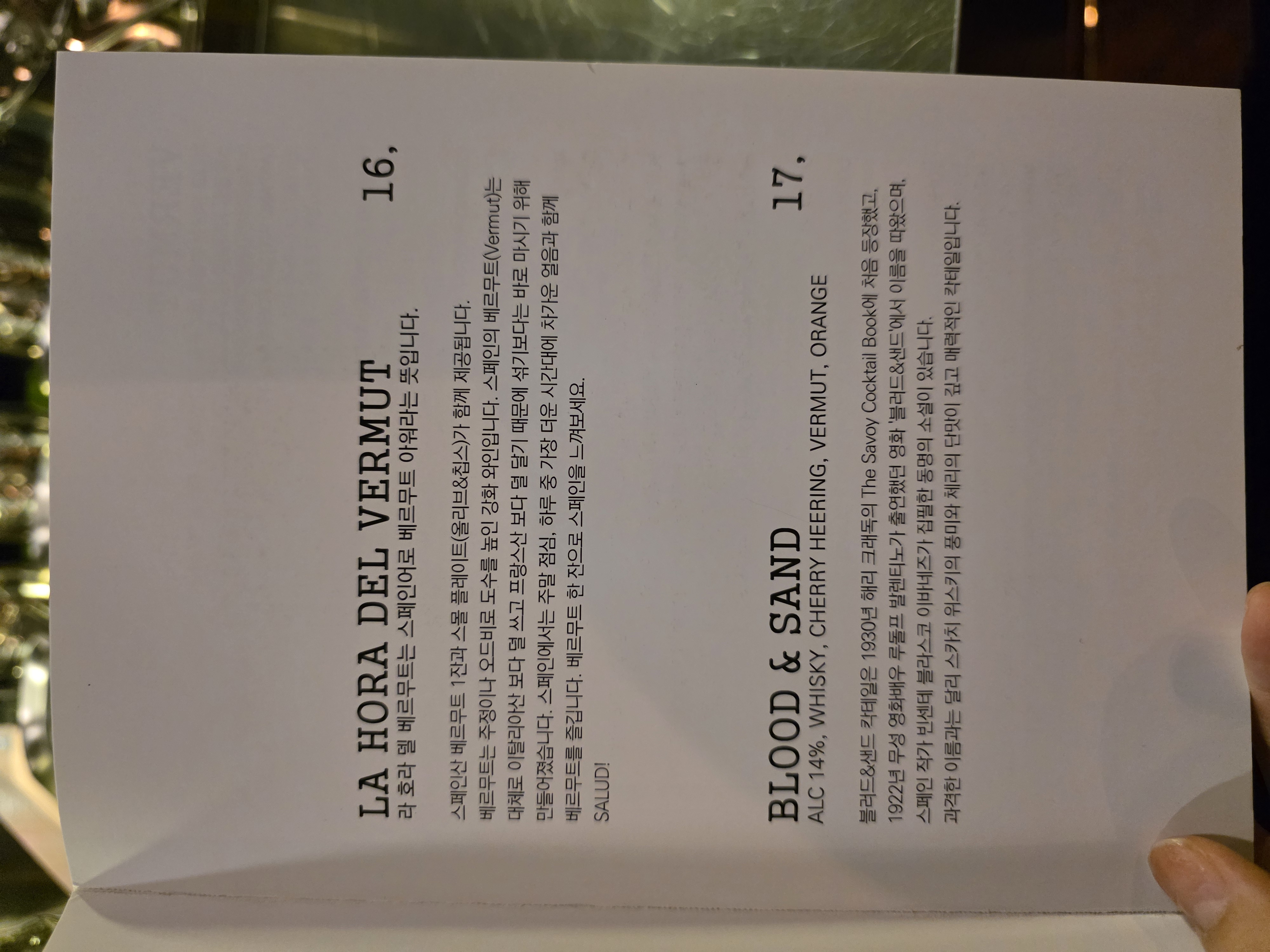 마티니는 그냥 마시면 되지만 소주처럼 원샷하는 칵테일이 아니기때문에 특히 이 집은 향이 좋기 때문에 천천히 향기부터 마시는게 좋습니다