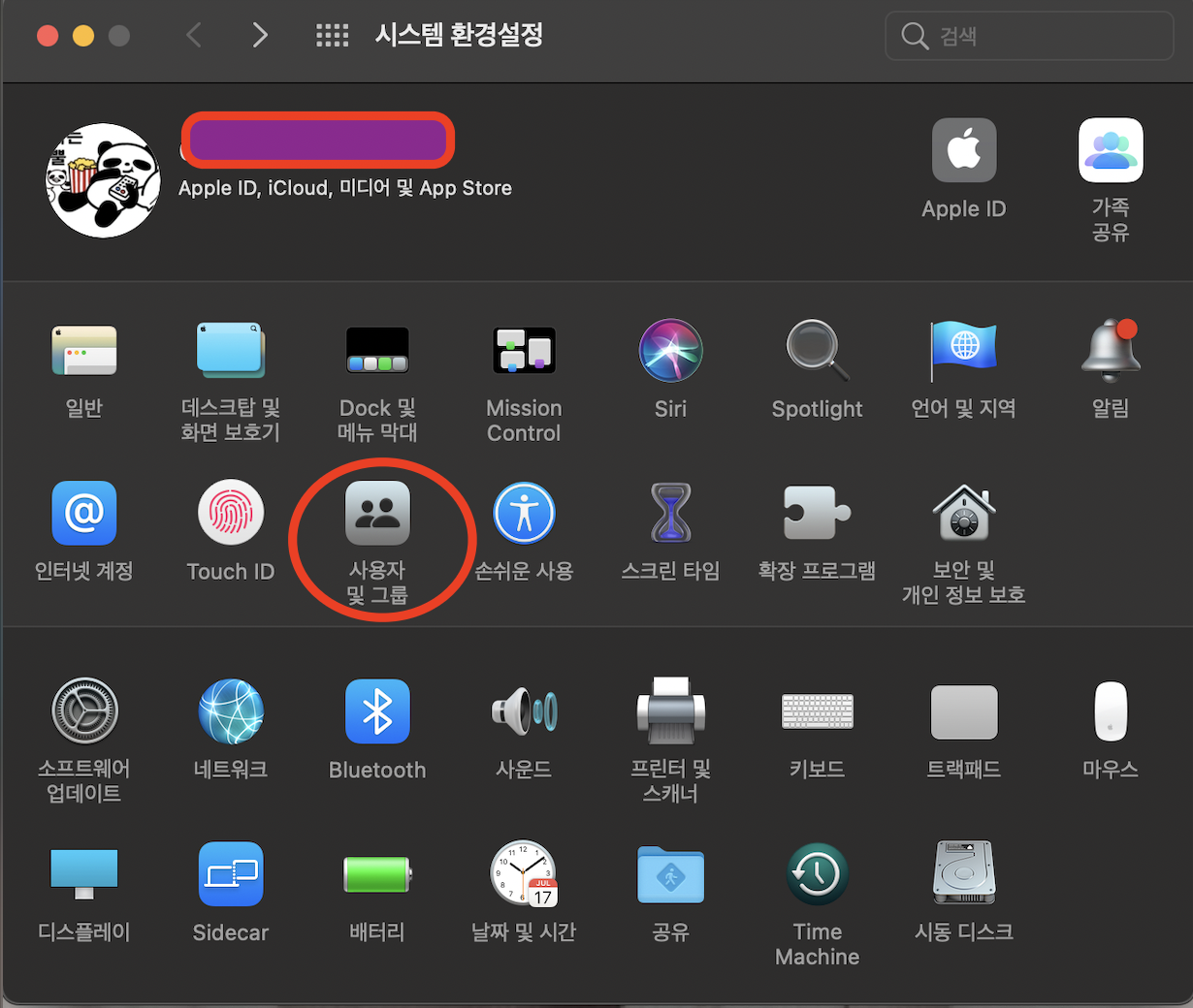 우선 본인컴퓨터의 계정이 관리자인지 보려면 시스템 환경설정으로 가셔야 합니다.