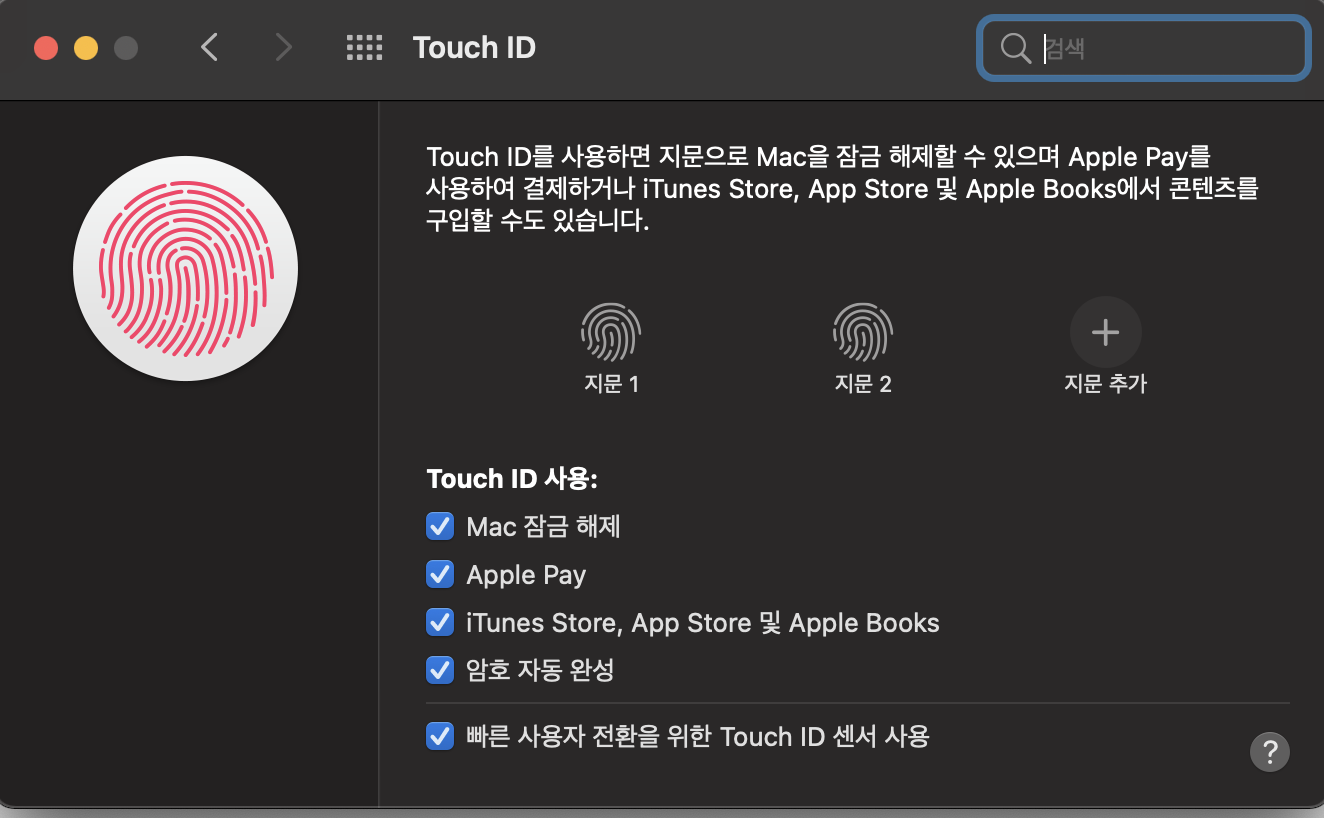 맥에서 옵션은 설정> 터치아이디 > 맥잠금해제를 해주세요