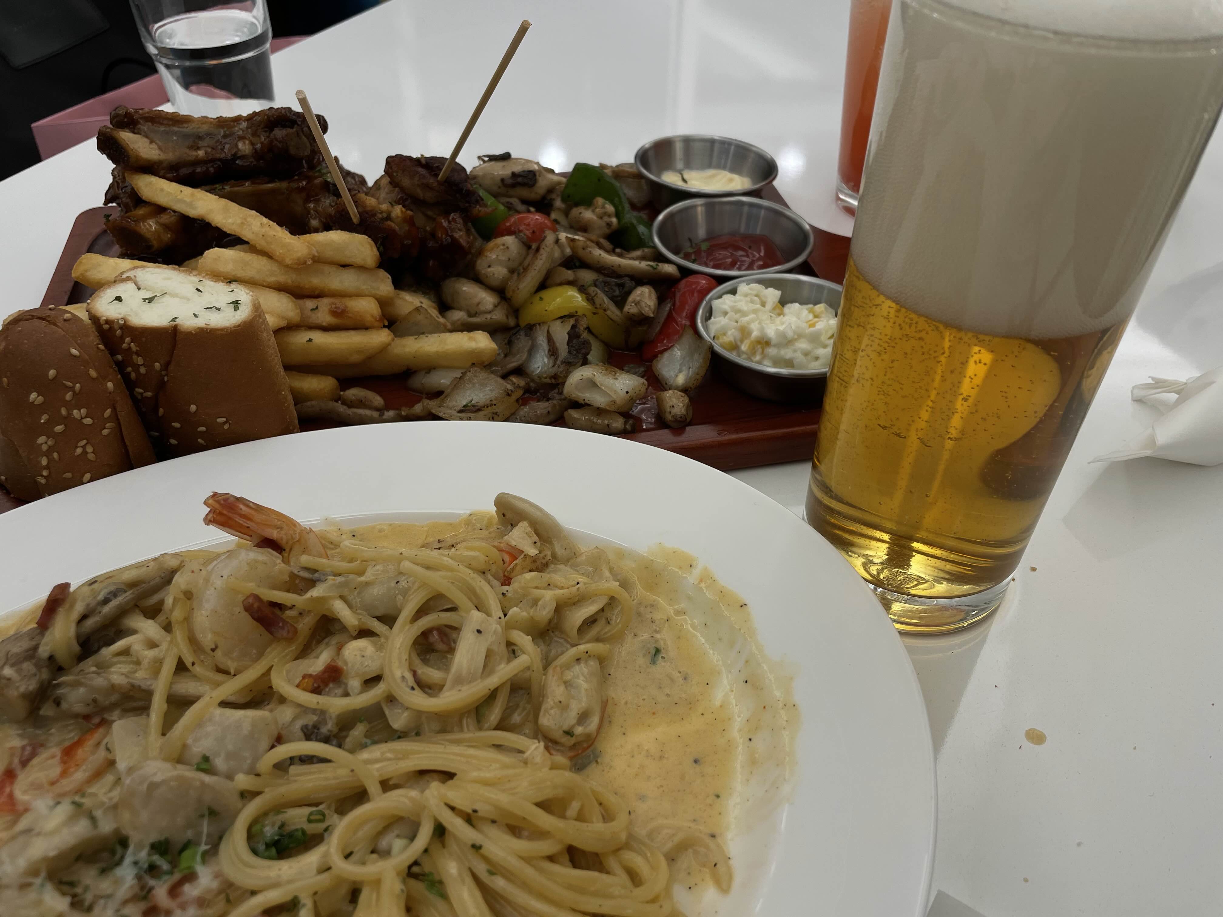 이날 폭립플래터/투움바파스타 2가지 메뉴를 시켰습니다