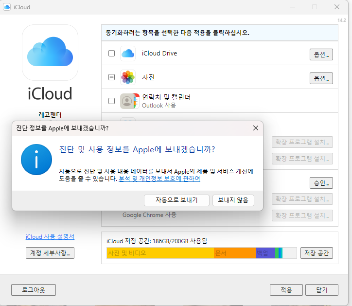 진단 데이터는 보내기 해도 되고 안해도 되는데 구형컴퓨턴 하지 않으시는걸 추천드립니다.